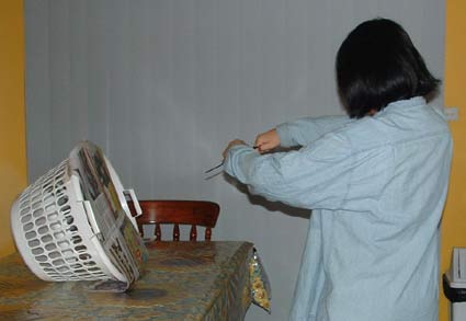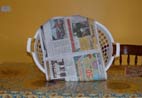 For this drill, you'll need a basin, laundry basket, strong box or similar container. Take some used newspaper (make sure it's not TOO old, or it'll tear easily) and tightly stretch 4 or 5 layers of paper over the opening of the container. Secure each layer with tape. The end result will look something like this: