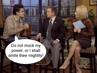 the shadows before his segment. At the time, the studio crew could find no reason why he should be skulking around. It is now widely thought that he was planning to spring some nasty Jedi mind-control tricks on unsuspecting audience members.